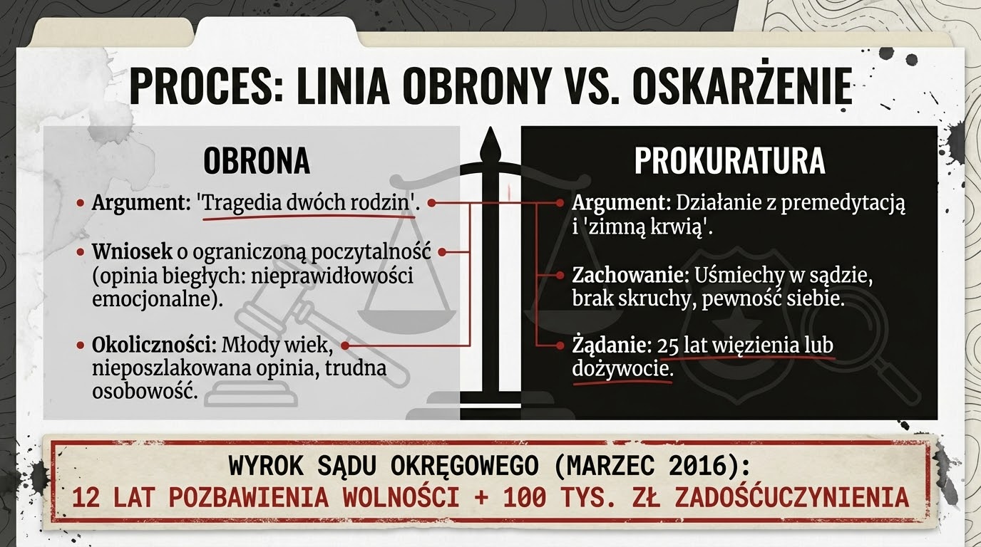 Po morderstwie nie był w szoku. W sądzie uśmiechał się szyderczo, nie okazując skruchy.