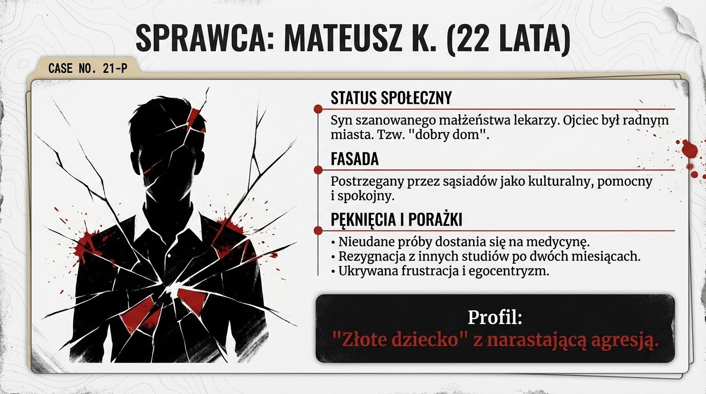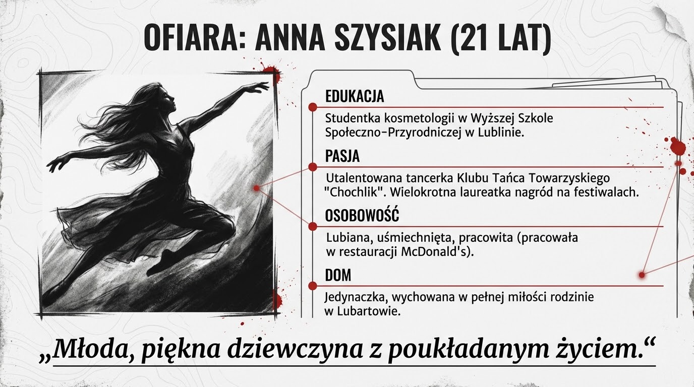 Mateusz K. i Anna S. byli parą przez trzy lata. On – 22-letni syn szanowanego małżeństwa lekarzy, stypendysta, postrzegany przez sąsiadów jako kulturalny i pomocny. Ona – utalentowana studentka kosmetologii i tancerka.